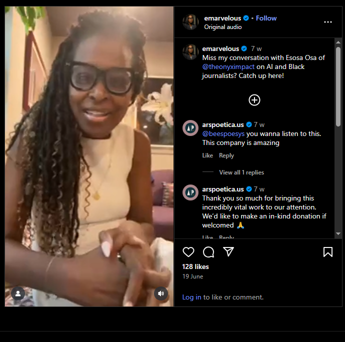Conversation with Esosa Osa of @theonyximpact on AI and Black Journalists